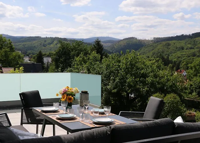 Vila Vila Harzhaus Sonnenschein je umístěna 2 km od Zámek Wernigerode, je 1-ložnicové ubytování s terasou.